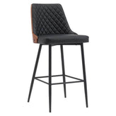 Wood Grain Metal Bar Stool In Walnut Finish, Black Vinyl Seat And Back