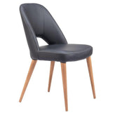 Beechwood Modern Solid Back Chair Black Vinyl Seat in Walnut Finish