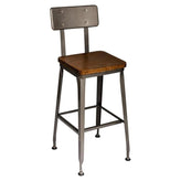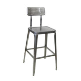 Octane Indoor Distressed Steel Bar Stool With Elm Wood Seat and Back