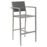 Aluminum Outdoor Bar Stool with Gray Imitation Teak Slats and Arms