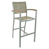 Aluminum Outdoor Bar Stool with Imitation Teak Slats, Grey Finish Frame