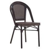 Outdoor Brown Metal Chair with Brown Poly Woven Back and Seat