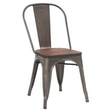Tolix Style Indoor Wooden Seat Steel Chair - Gunmetal