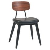 Indoor Metal Dining Chair with Curved Wood Back and Black Cushioned Seat