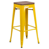 Lily 24'' High Backless Tolix Metal Outdoor Counter Height Stool with Wood Square Seat