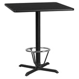 36'' Square Laminate Table Top with 30'' x 30'' Bar Height Table Base and Foot Ring