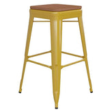 30" High Backless Tolix Outdoor Bar Stool with Square Faux Teak Seat