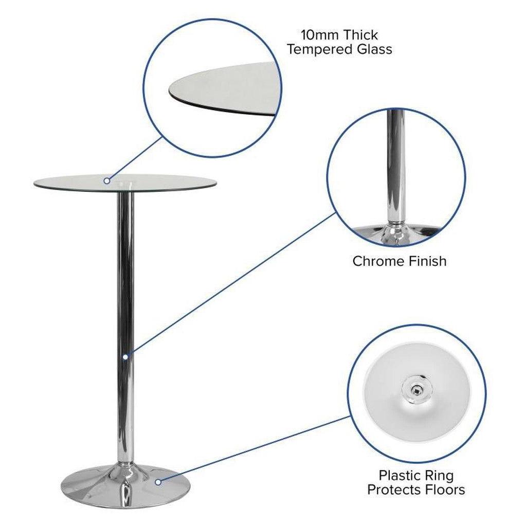 - 23.5'' Round Glass Table with 35.5''H Chrome Base