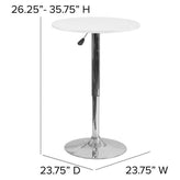 23.75'' Round Adjustable Height White Wood Table (Adjustable Range 26.25'' - 35.75'')