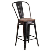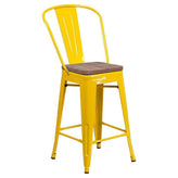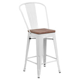 - 24" High Tolix Counter Height Stool with Back and Wood Seat