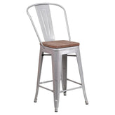 24" High Tolix Counter Height Stool with Back and Wood Seat