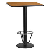 24'' Square Laminate Table Top with 18'' Round Bar Height Table Base and Foot Ring