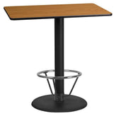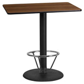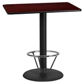 - 24'' x 42'' Rectangular Laminate Table Top with 24'' Round Bar Height Table Base and Foot Ring