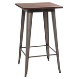 24" Square Indoor Bar-Height Elm Wood Top with Gunmetal Steel Base