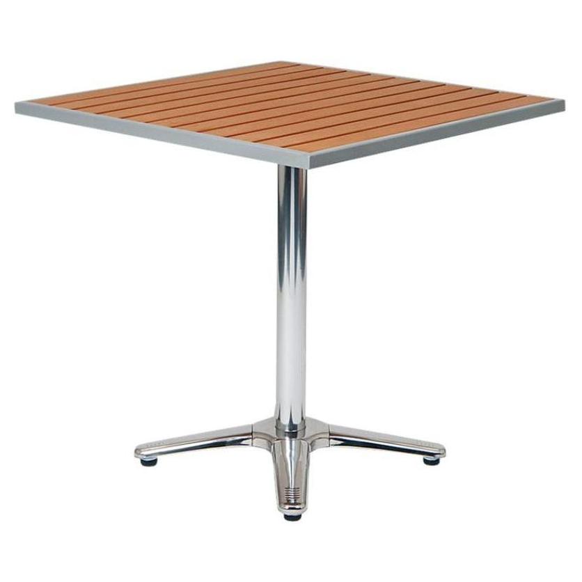 This Imitation Teak Slat Top Table with aluminium Base is a commercial grade table designed to last and look great in your restaurant. The table fits in nicely for restaurants desiring a modern design. This product is backed by our customer satisfaction return policy and our low price guarantee.