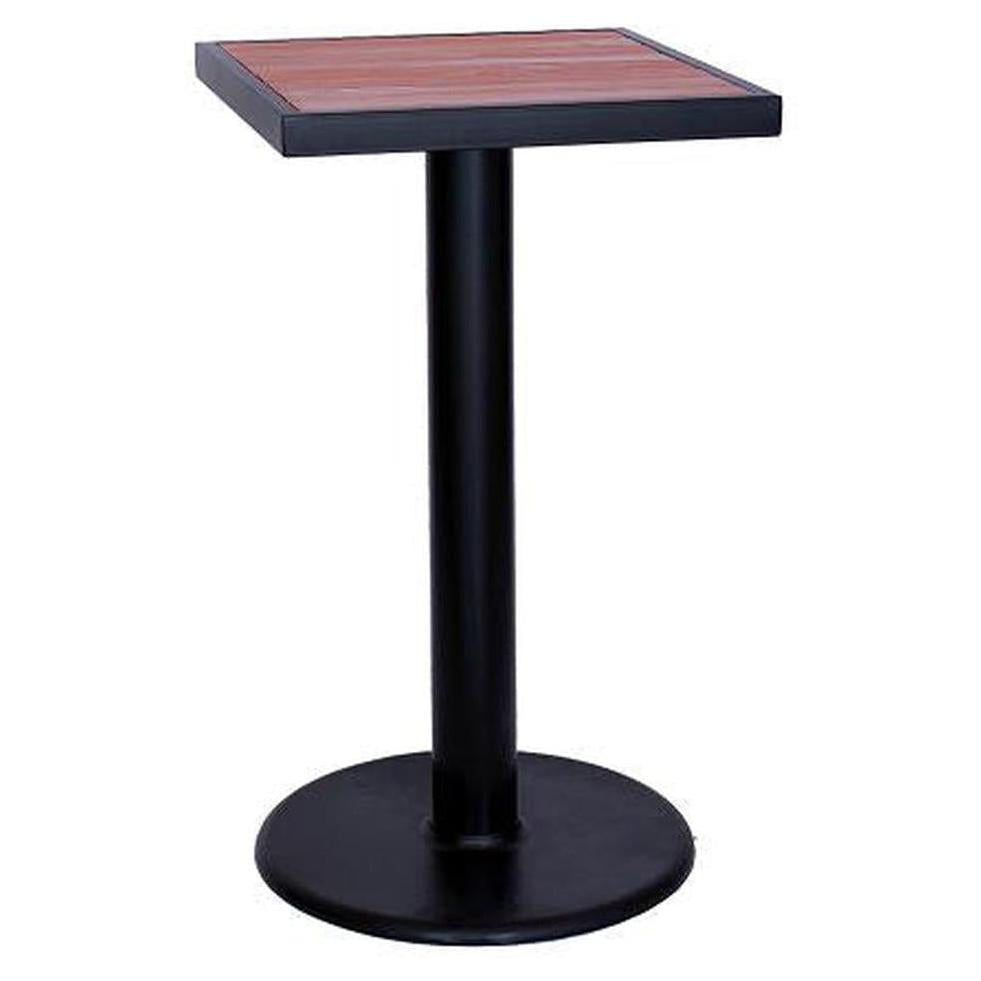 - 24" Square Outdoor Rosewood Slat Bar Height Table with Black Steel Base