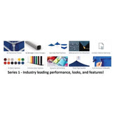 Our 26x13ft canopy tents are built in our Series 1 - offering professional level quality plus heavy-duty features for a robust design. The S1 level has our full selection of standard fabric colors, smart accessories and in-house printing options, as well as professional waterproof, fire-retardant, UV-protection, Limited Lifetime Warranty, and wind-tough performance!