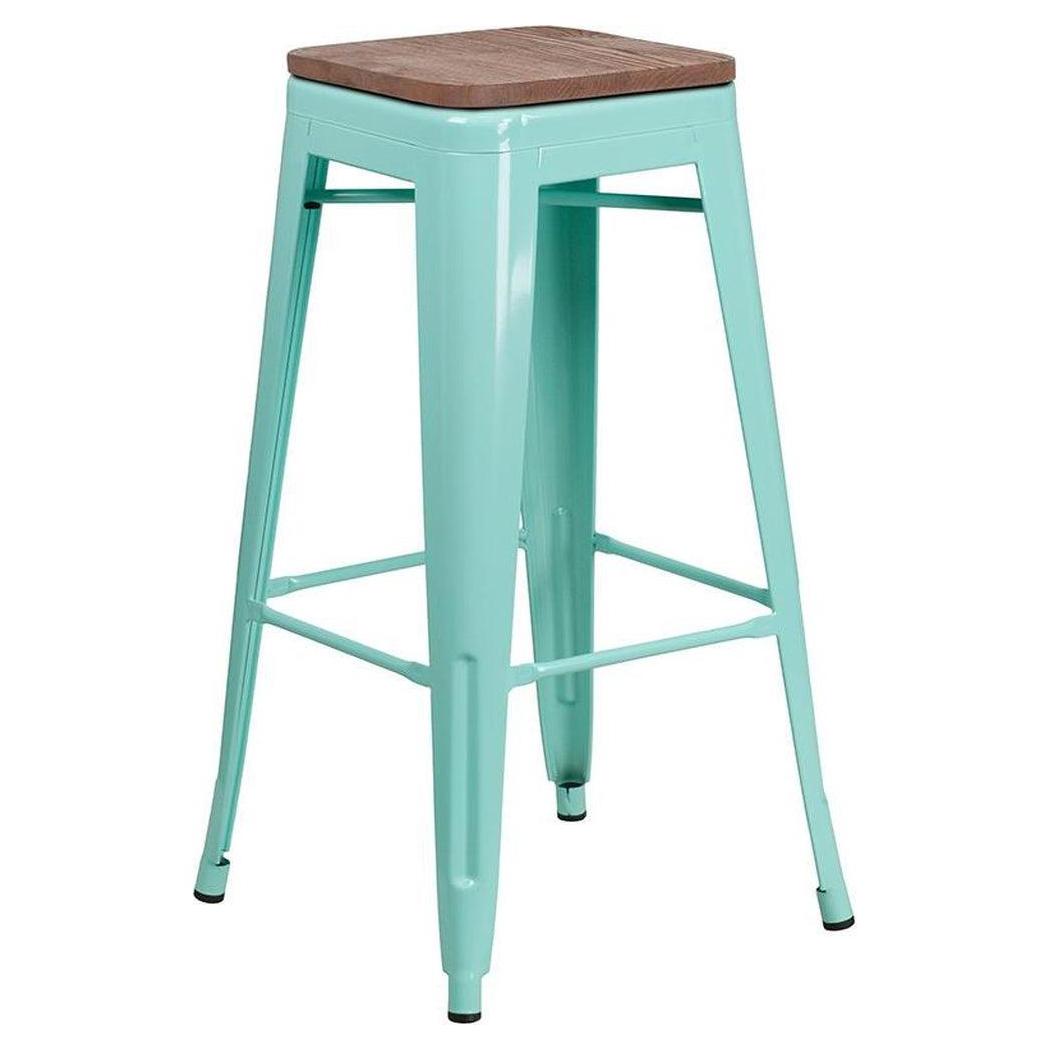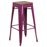 - 30" Bar Height Tolix Style Backless Stool with Wood Seat