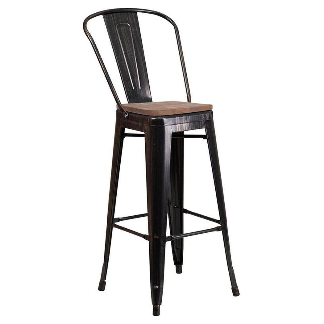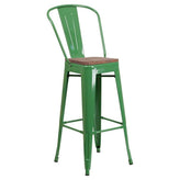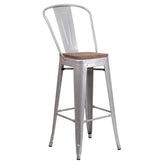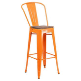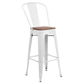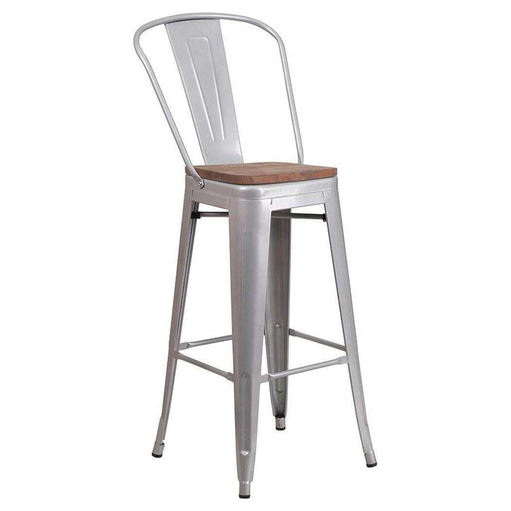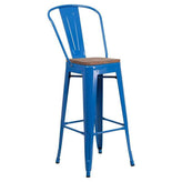 30" High Tolix Style Bar Stool with Back and Wood Seat