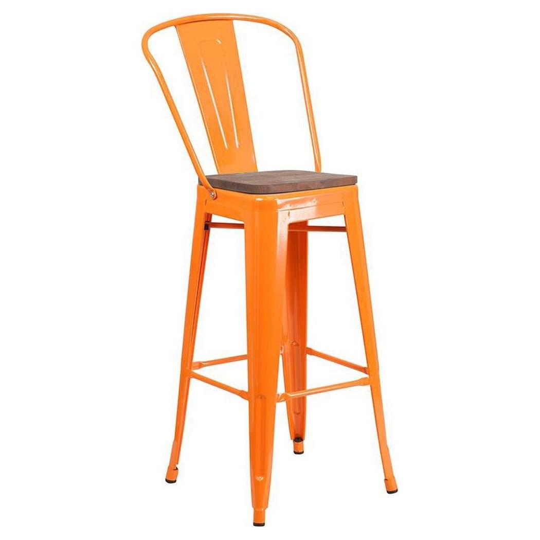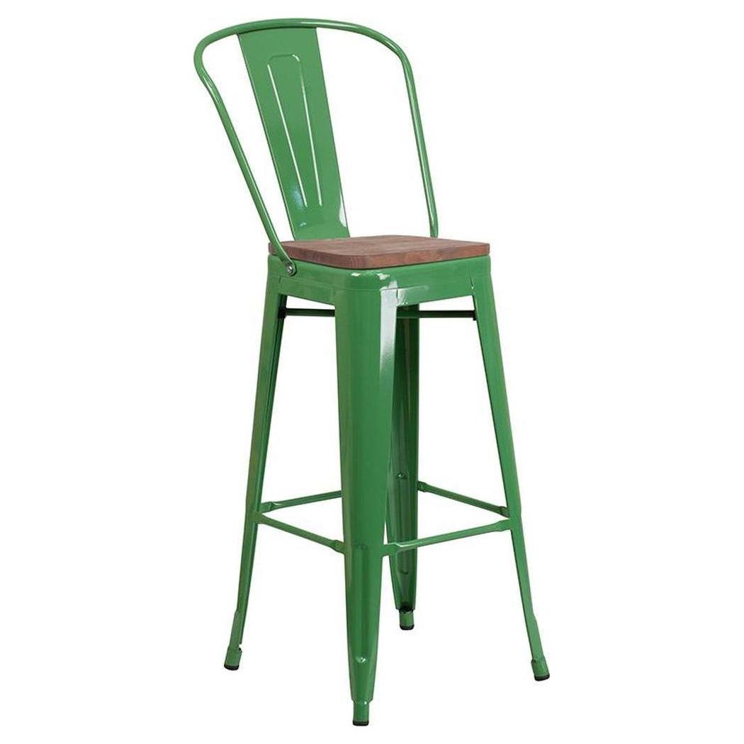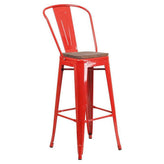 - 30" High Tolix Style Bar Stool with Back and Wood Seat