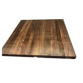 1-3/4" Thick walnut plank top, with a standard edge detail, natural woodtone, and a dull gloss polyurethane finish.