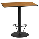 - 30'' x 48'' Rectangular Laminate Table Top with 24'' Round Bar Height Table Base and Foot Ring