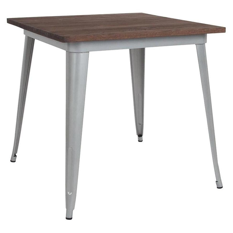This 31.5" Square Wood Top Tolix Table is designed to last and look great in your restaurant. Top Compact in design, the square tabletop has an appealing textured top. The brace under the tabletop provides increased support and stability. Rubber floor glides protect your floor by sliding smoothly when you need to move it. Designed for both commercial and residential use, this trend-setting table is a great choice for foodservice locations.