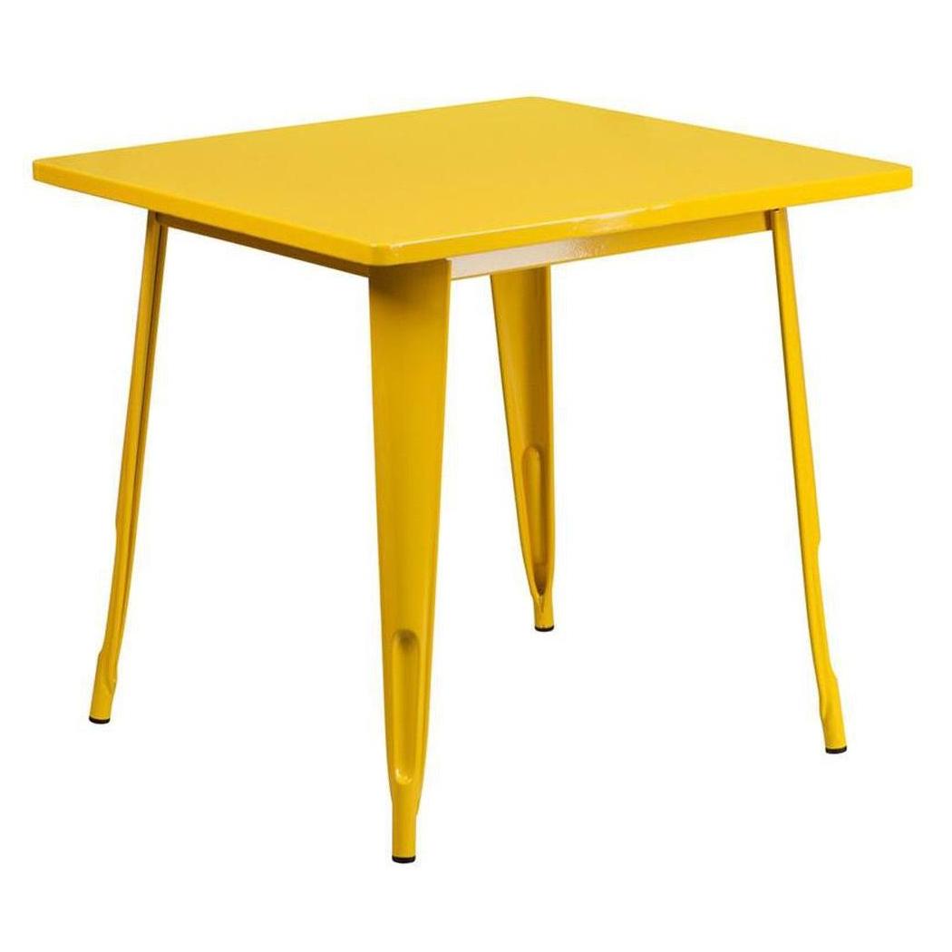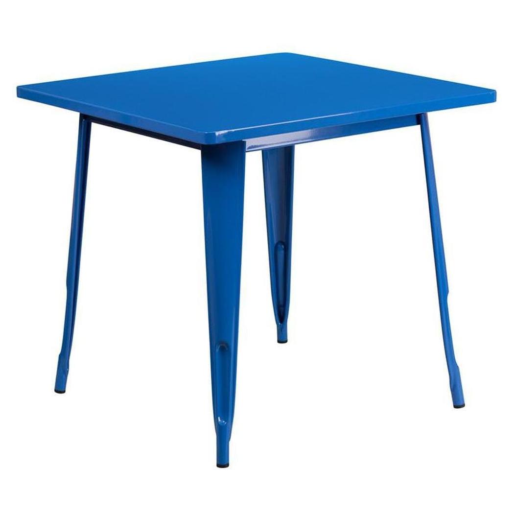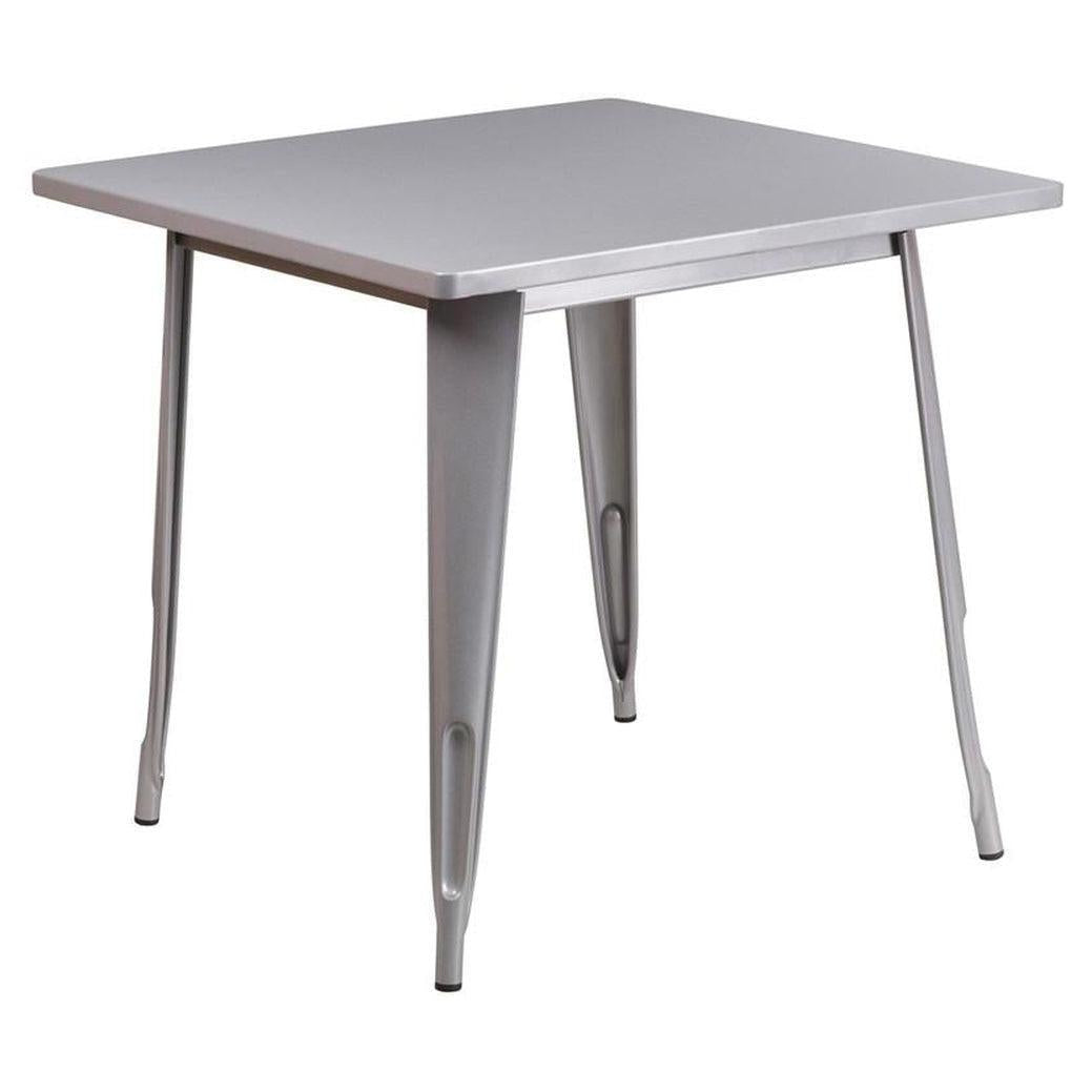 This 31.5" Square Metal Indoor-Outdoor Table is a commercial grade table designed to last and look great in your foodservice location. This table works great for modern design. It is made of metal, steel designed for the budget price point. This product is protected by our low price guarantee and our customer satisfaction return policy.