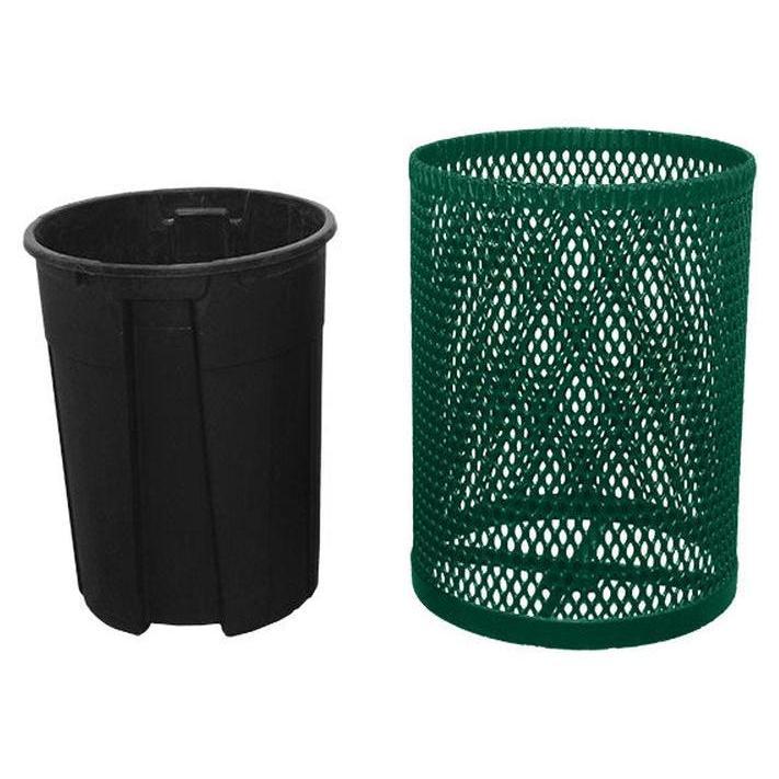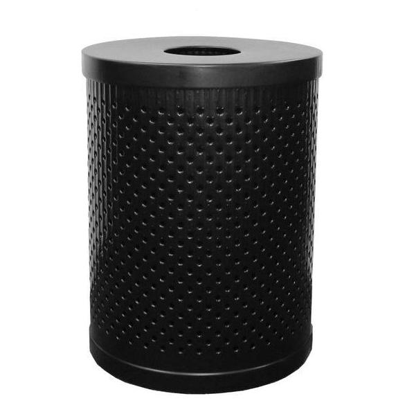 The durable strength of our contract grade 32-gallon round garbage can offers a perfect solution to high-traffic sites. Now, this popular style is also available with smooth perforated steel sides with a coating of either black or brown. Restaurants, city sidewalks, businesses, and parks can all benefit by containing trash in an attractive and tidy manner. This one-piece contract-grade receptacle needs no assembly! Plus, each receptacle comes with a plastic liner. We offer a flat lid that will easily lift off for easy garbage removal.