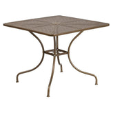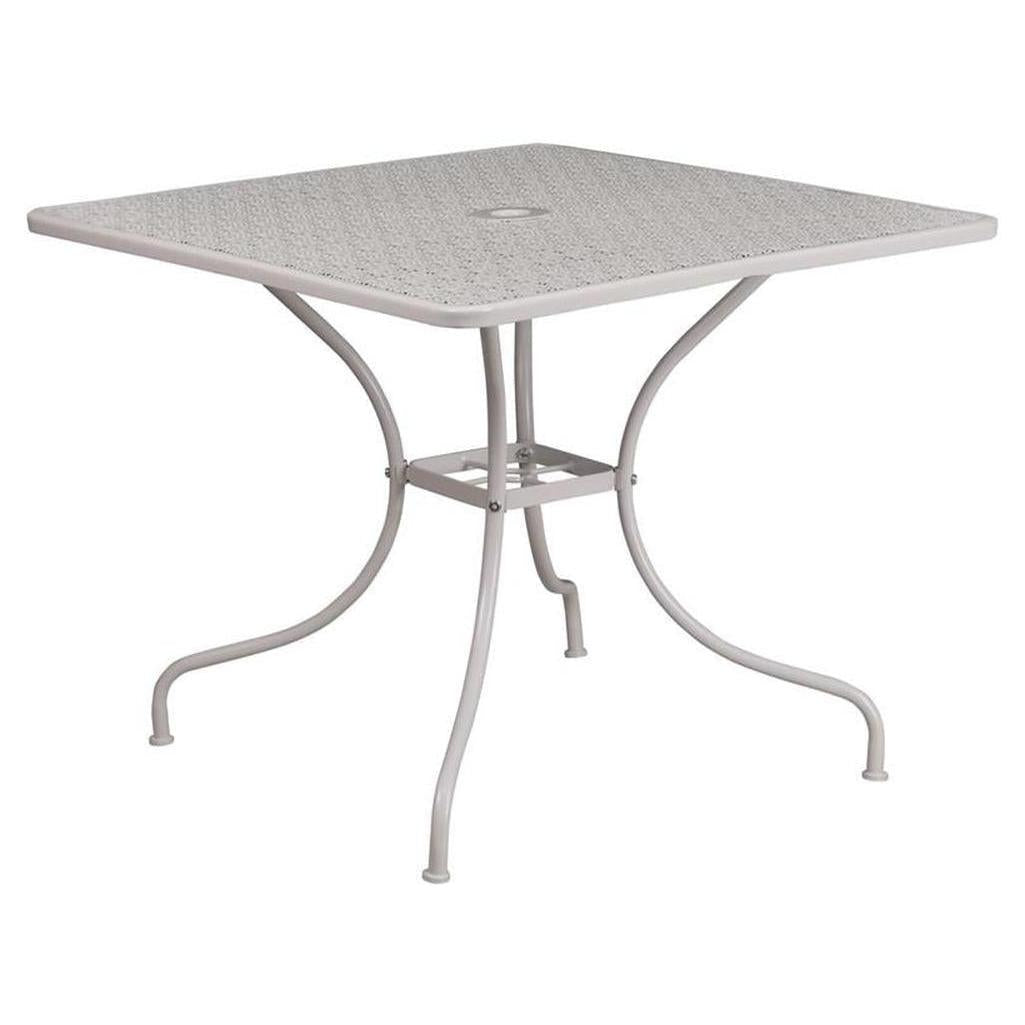 This 35.5'' Square Indoor-Outdoor Steel Patio Table is a commercial grade table designed to look great in your foodservice location. This table fits in nicely for restaurants desiring a modern design. It is made of metal, steel. This product is backed by our customer satisfaction return policy and our best price guarantee.