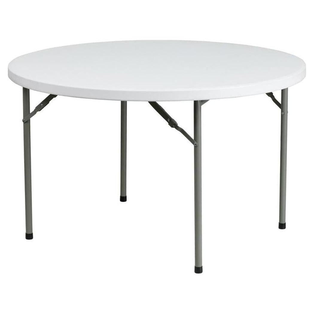 Our 4-Foot Round Granite White Plastic Folding Table is of the highest quality, and is designed for commercial grade foodservice needs. This product is protected by our one year product warranty.