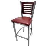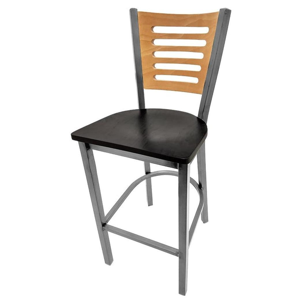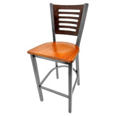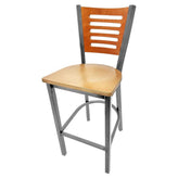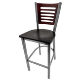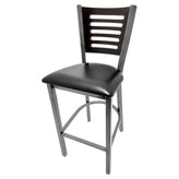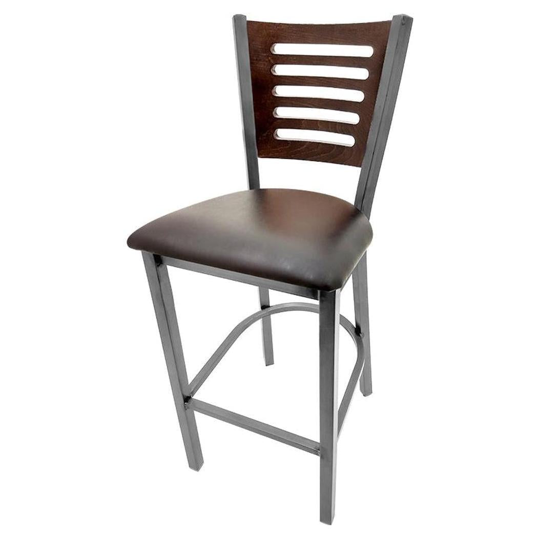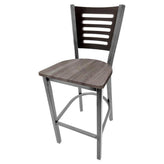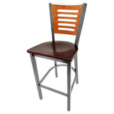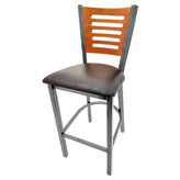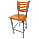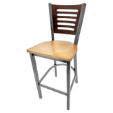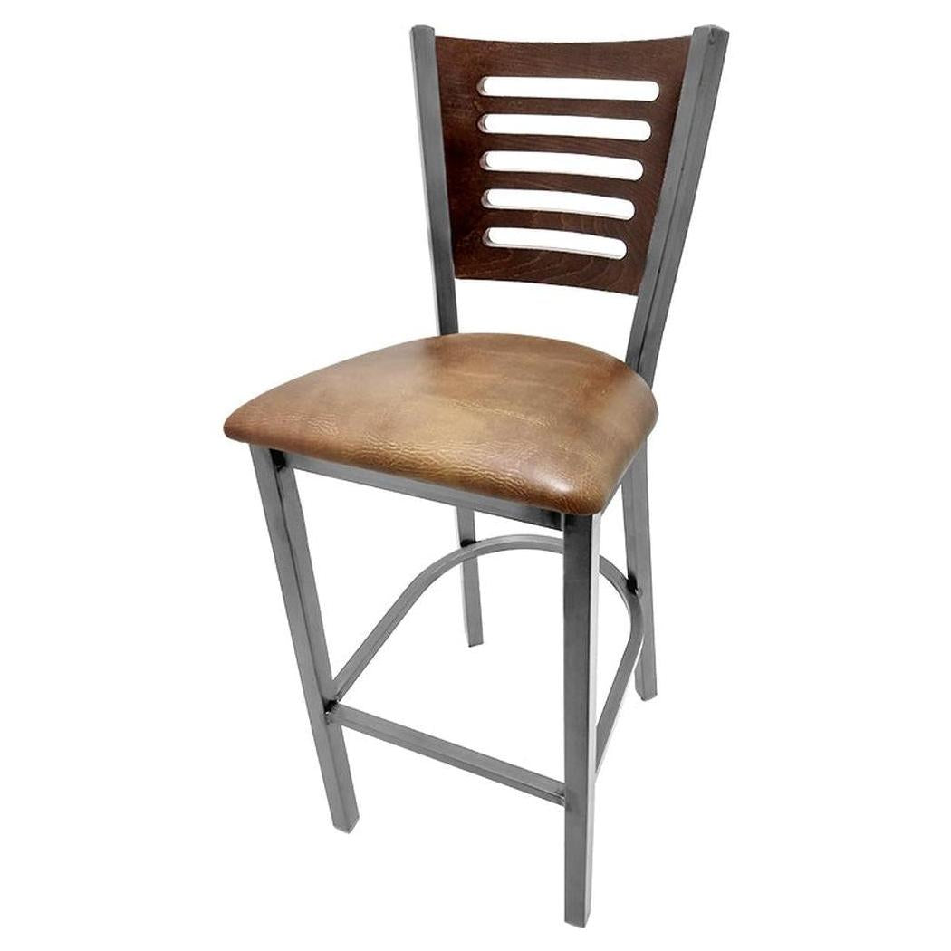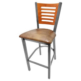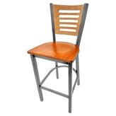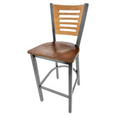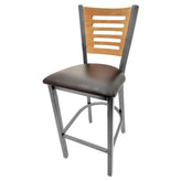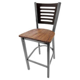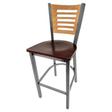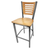 5 Line Wood Back Bar Stool with Clear Coat Frame