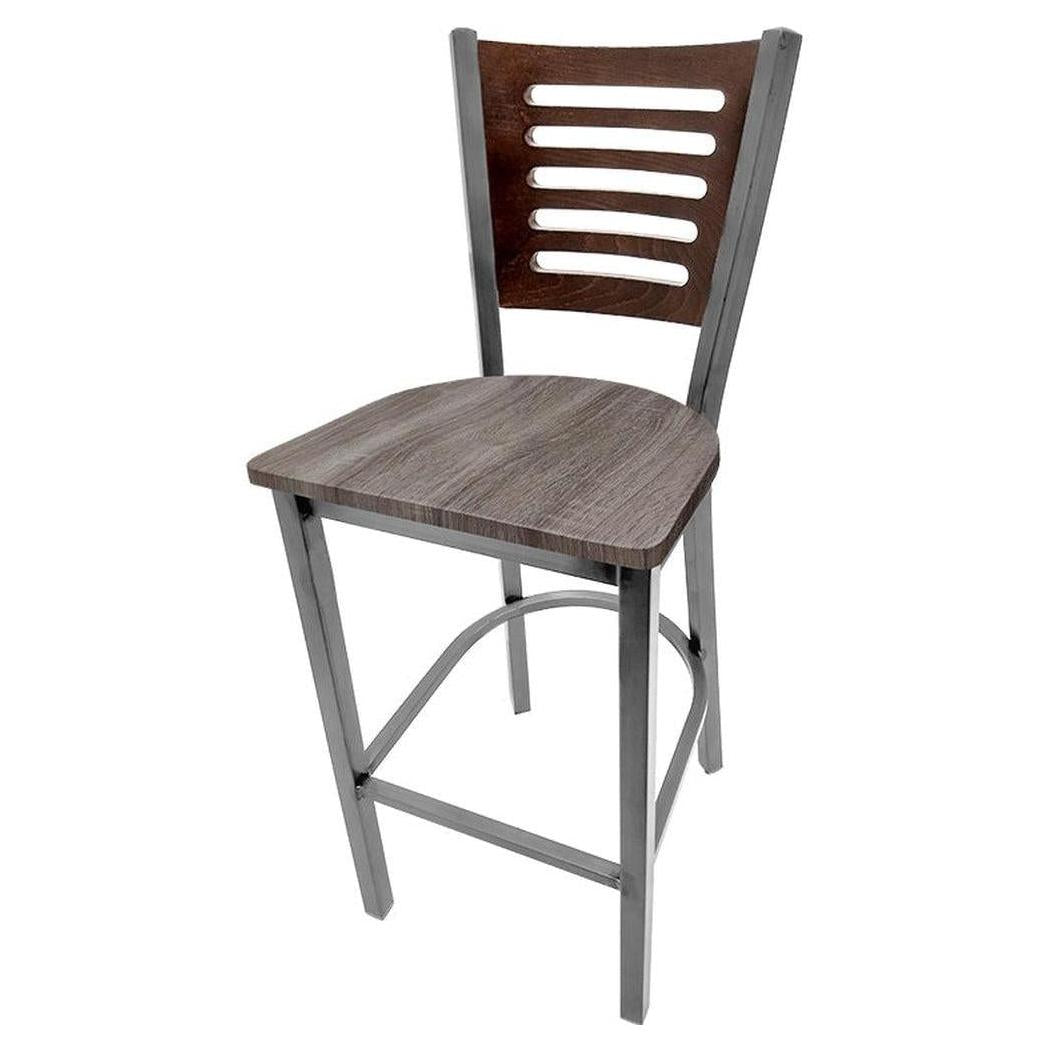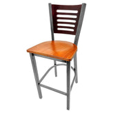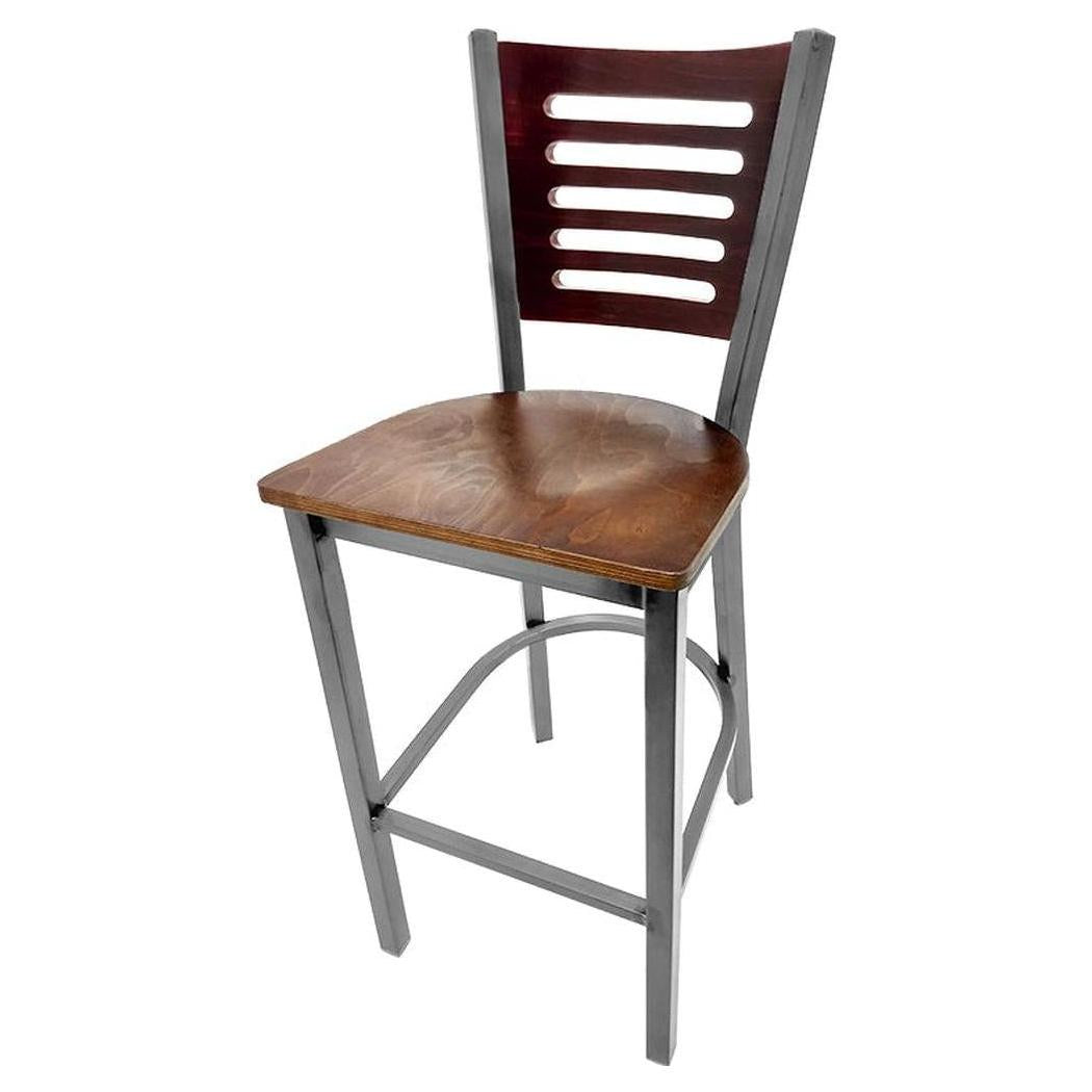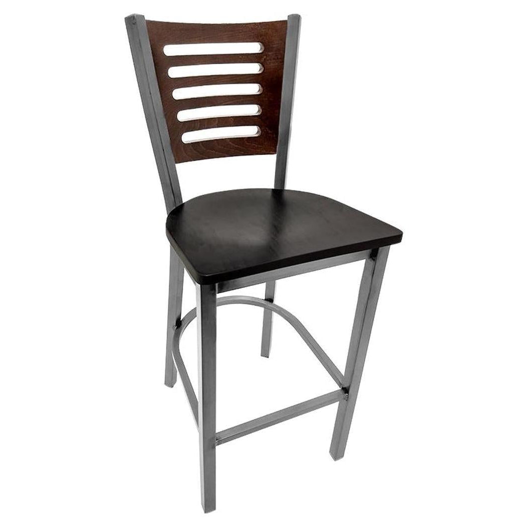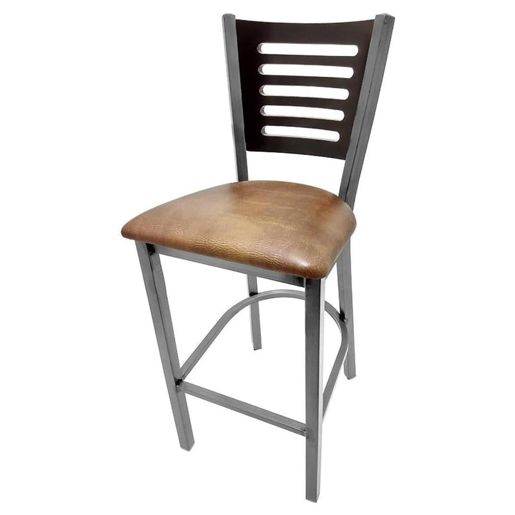 5 Line Wood Back Bar Stool with Clear Coat Frame