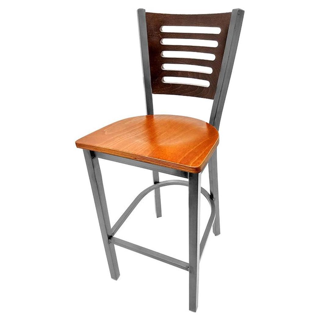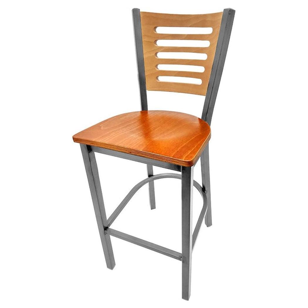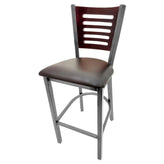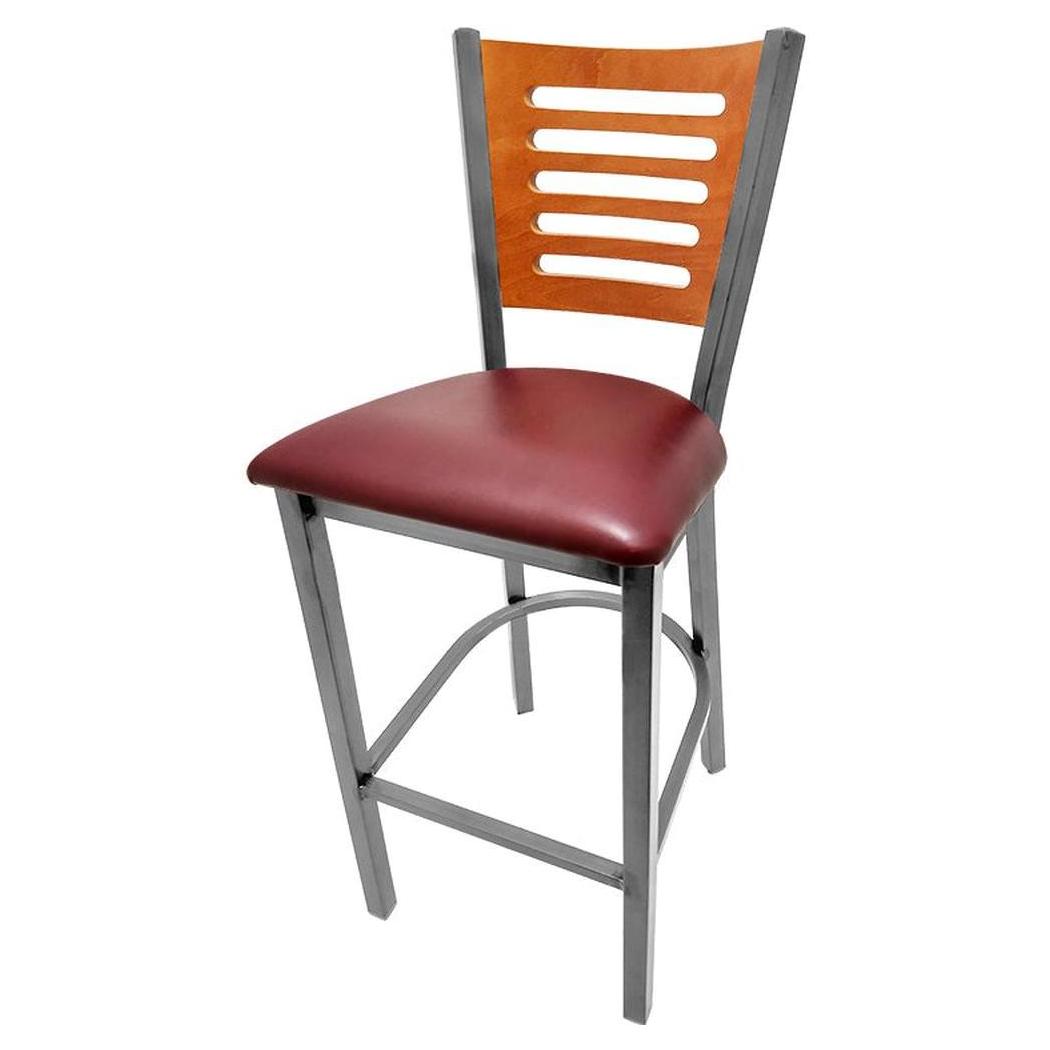 - 5 Line Wood Back Bar Stool with Clear Coat Frame