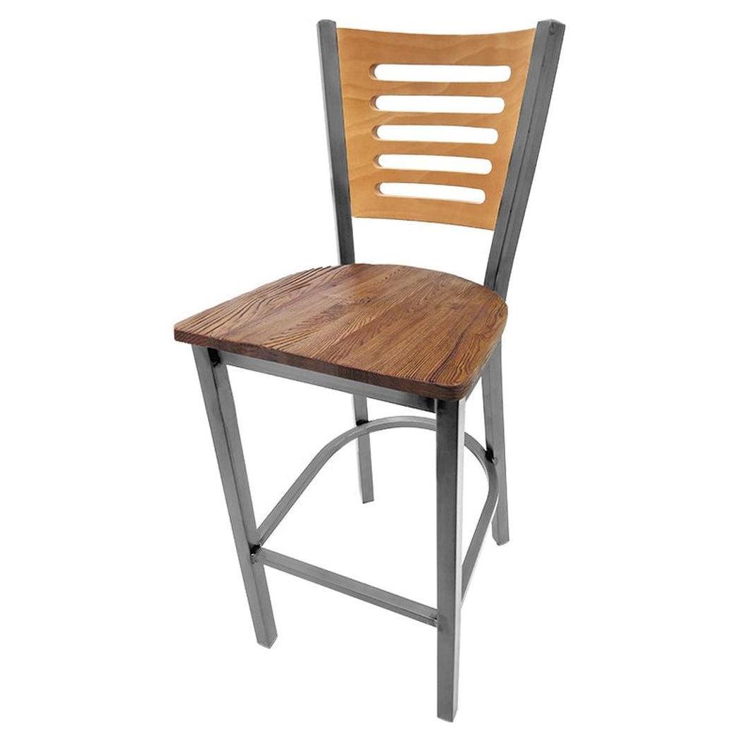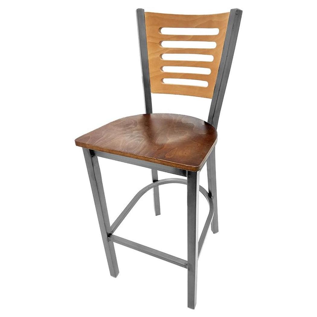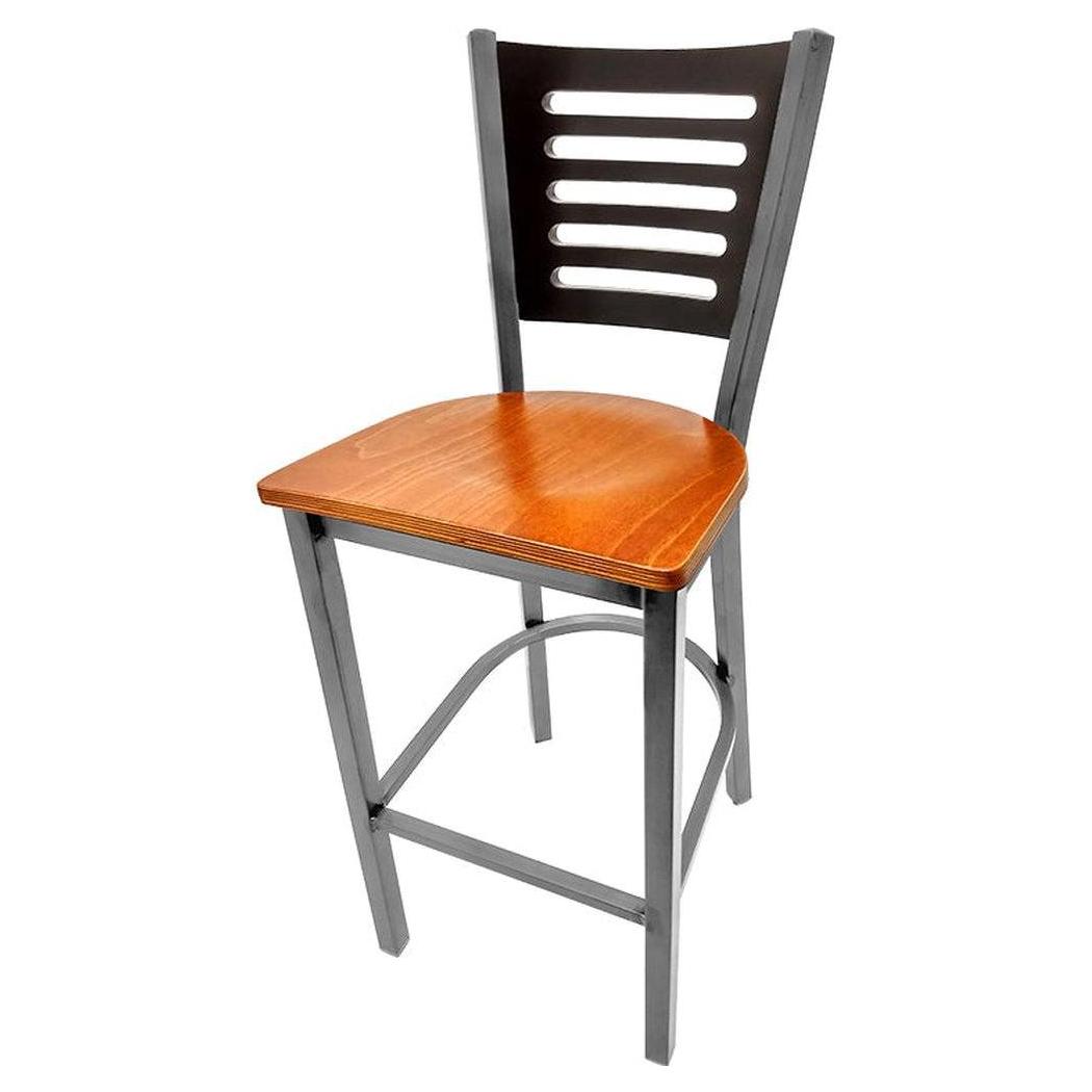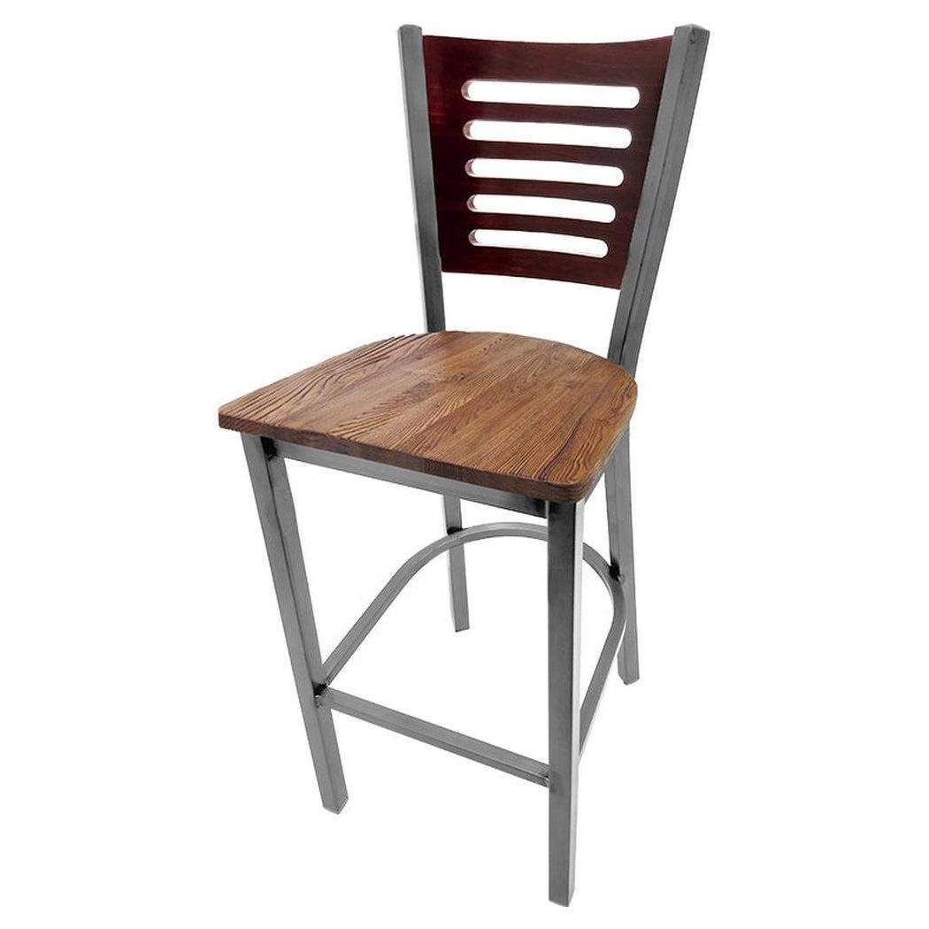 - 5 Line Wood Back Bar Stool with Clear Coat Frame