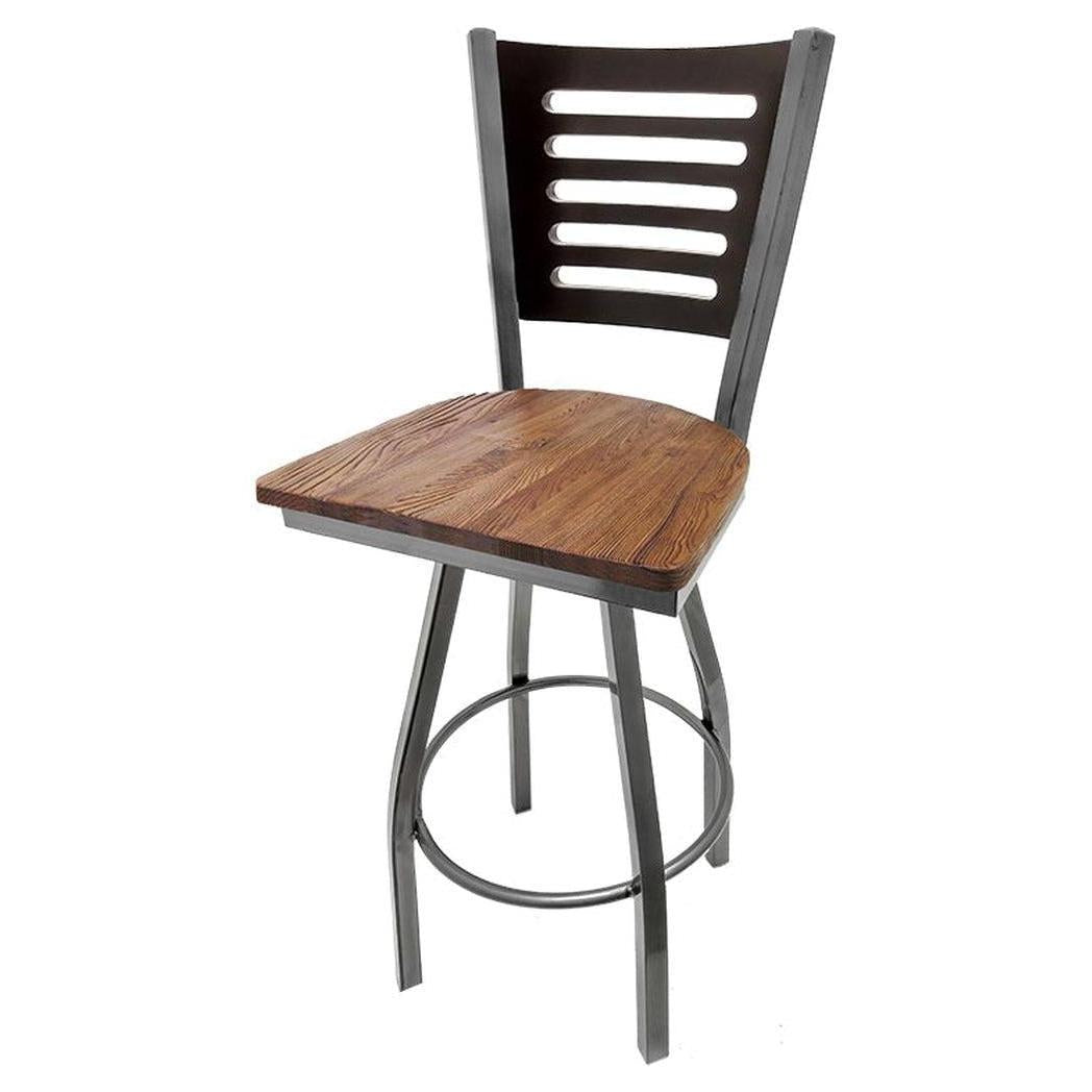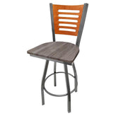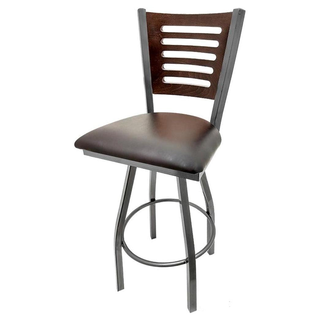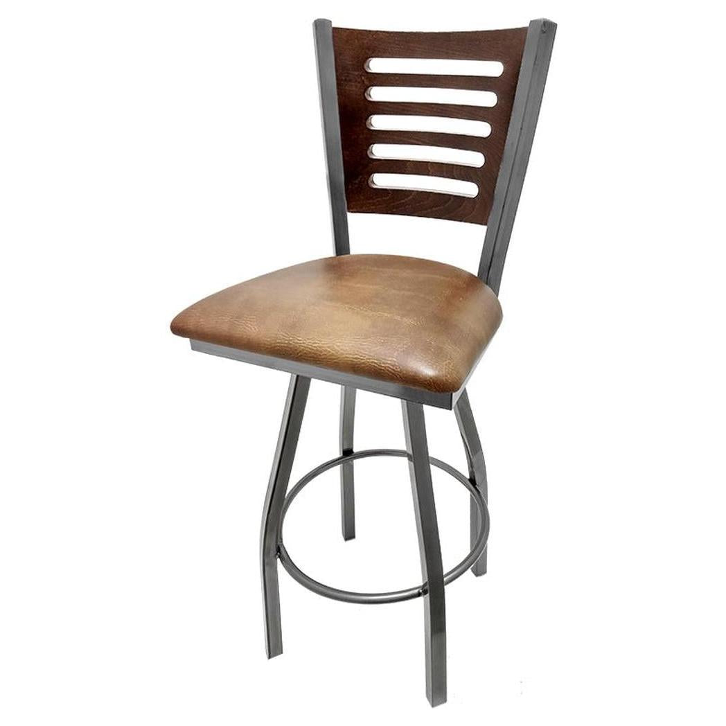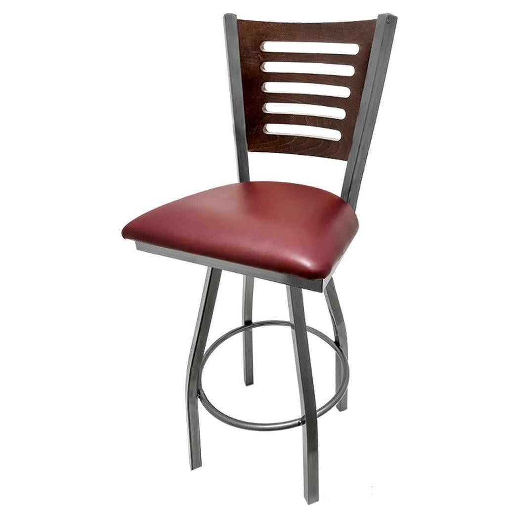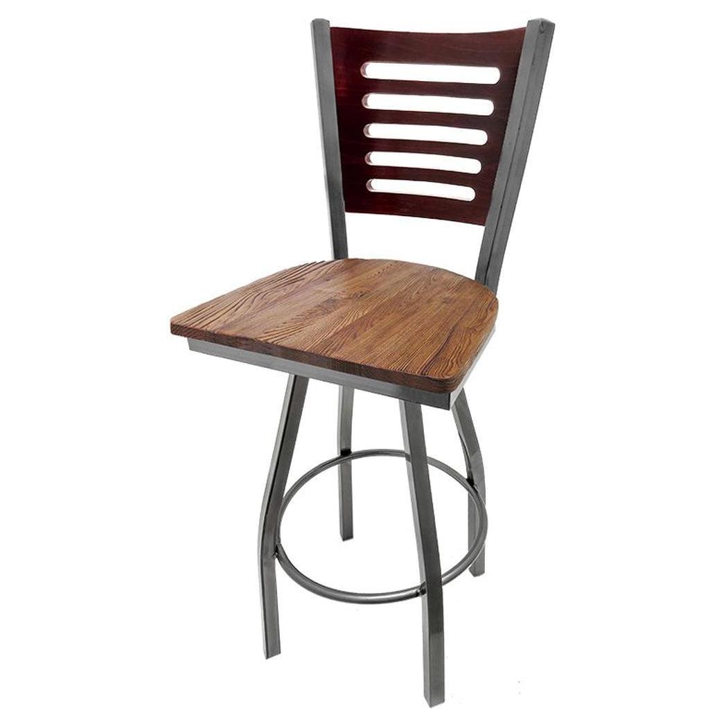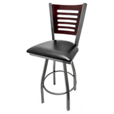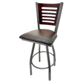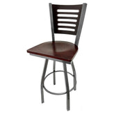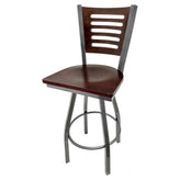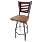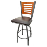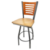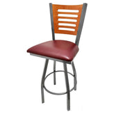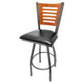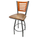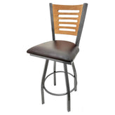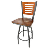 5 Line Wood Back Bar Stool with Clear Coat Swivel Base