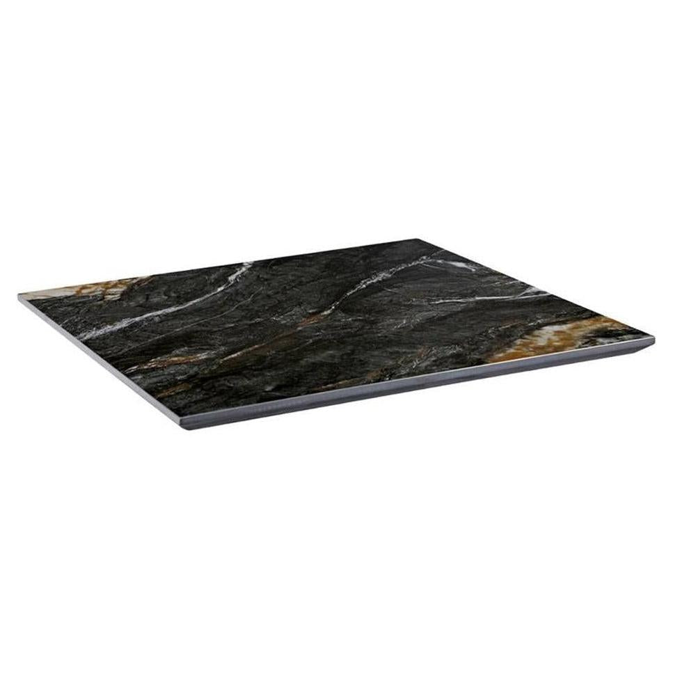 These 7/8" Black and Amber Veining Sintered Stone Outdoor Table Tops are commercial-grade and designed to last and look great in your foodservice location. These table tops works great for industrial or modern designs. Backed by our best price guarantee, these table tops will satisfy for years to come by offering style and durability.