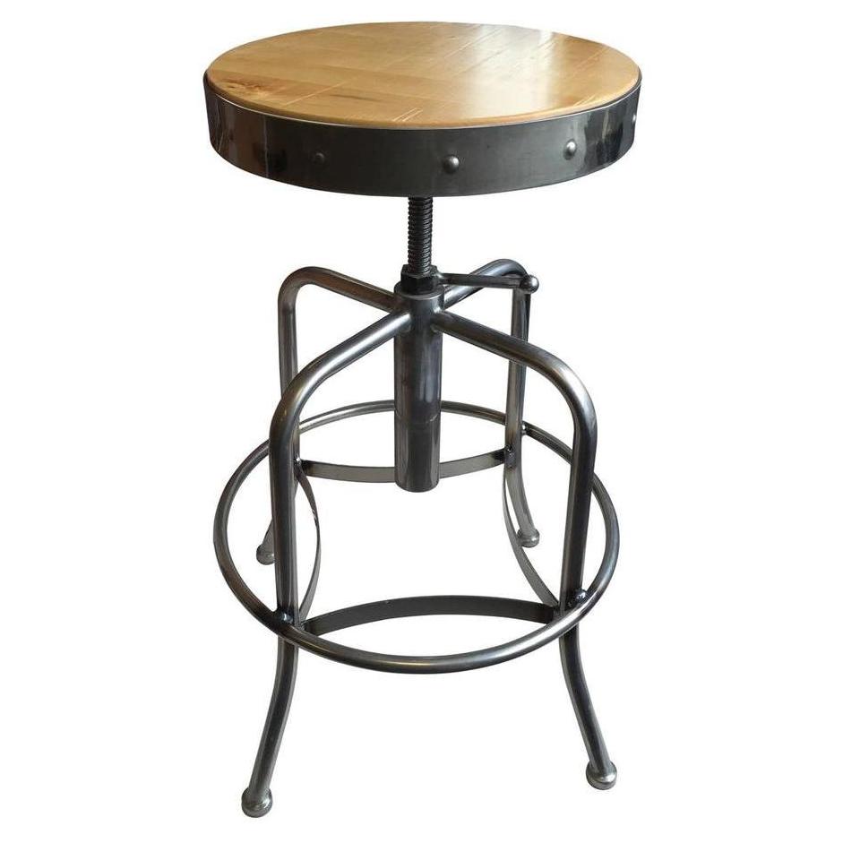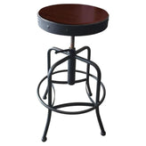 Our Adjustable, Industrial style swivel stool brings back the classic look of the early 1900's drafting stools. Built to last a lifetime, the steel tube frame has solid welds on the outside of the legs, connecting the substantial, 18" diameter foot ring, and on the inside, attaching a solid, steel inner support. The 15" diameter, distressed wood seat is accented by 2", studded ring. The 1" thick, solid steel screw, allows the seat height to be adjusted from 24" (Counter Height) to 30" (Bar Height). The locking nut can set the stool to your desired height. Don't be fooled by a cheap imitation.