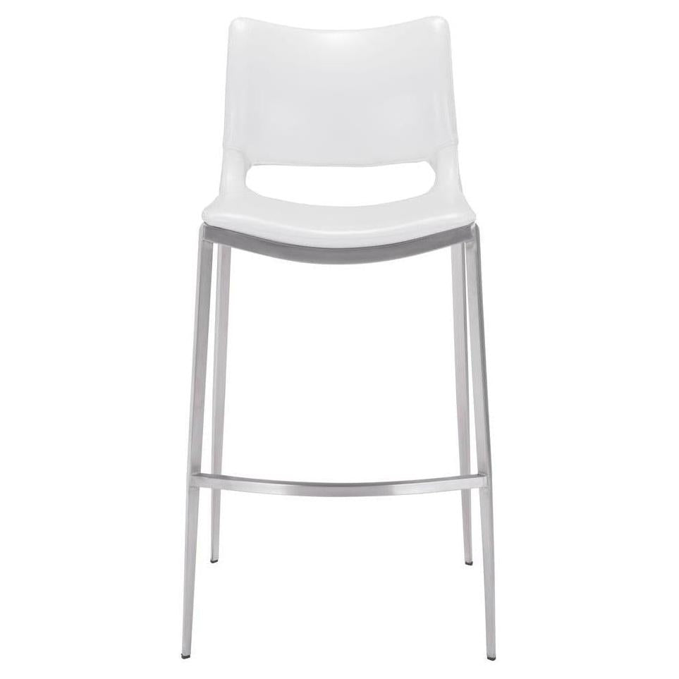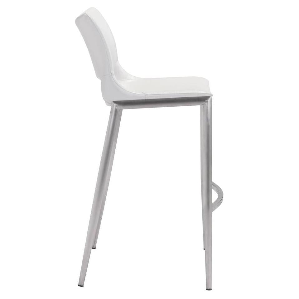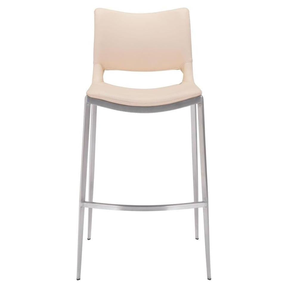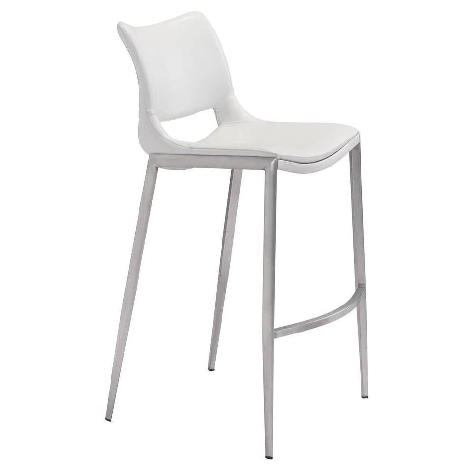 Built for comfort, this ergonomic bar chair is the perfect solution for your restaurant. A brushed stainless steel frame plays a supporting role while the built-in curved footrest keeps you firmly planted. Black faux leather seat deck is sleek and modern, making this bar chair the perfect compliment to any room setting. |