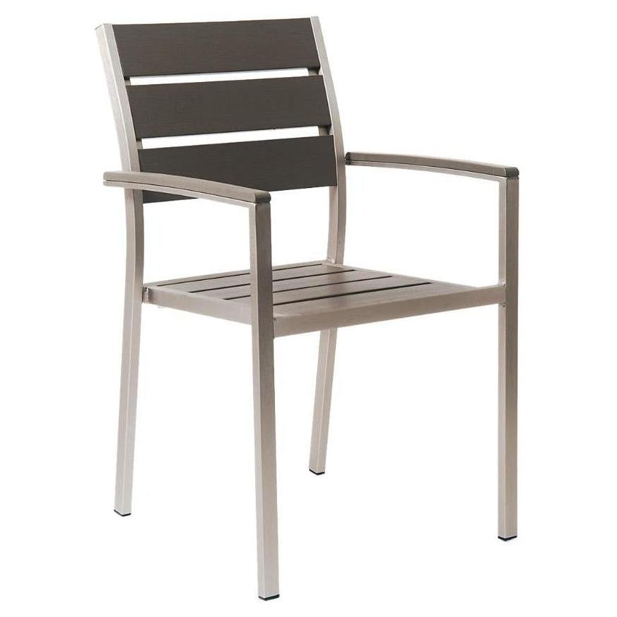 This aluminium Armchair with Imitation Teak Slats Grey Finish is a commercial grade chair designed to last and look great in your restaurant. The chair fits in nicely for restaurants desiring a modern design. It is made of aluminium and is available in grey. This product is backed by our customer satisfaction return policy and our best price guarantee.