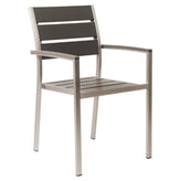 Aluminum Armchair with Imitation Teak Slats Grey Finish