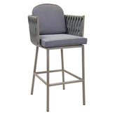 - Aluminum Grey Finish Bar Stool with Cushioned Seat and Back