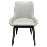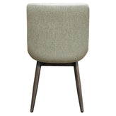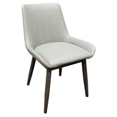 Elevate your dining experience with the Amata Modern Upholstered Dining Chair, designed for both comfort and style. Featuring a sleek 1.2mm metal frame available in faux natural wood clear coat or driftwood wood grain finishes, this chair complements any modern or contemporary space. The bucket seat, upholstered in your choice of charcoal or light moss fabric, offers a cozy yet sophisticated seating option.