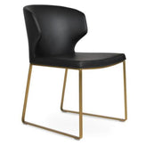 Amed +(PLUS) Sled is an ergonomic dining chair with a comfortable upholstered seat and backrest on a sled steel legs which are plastic tipped with plastic caps embedded inside the steel base. The seat has a steel structure with shape springs for extra flexibility and strength. This steel frame is molded by an injecting polyurethane foam. Amed +(PLUS) seat is upholstered with a removable velcro enclosed leather, PPM or wool fabric slip cover. The chair is suitable for both residential and commercial use.