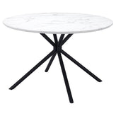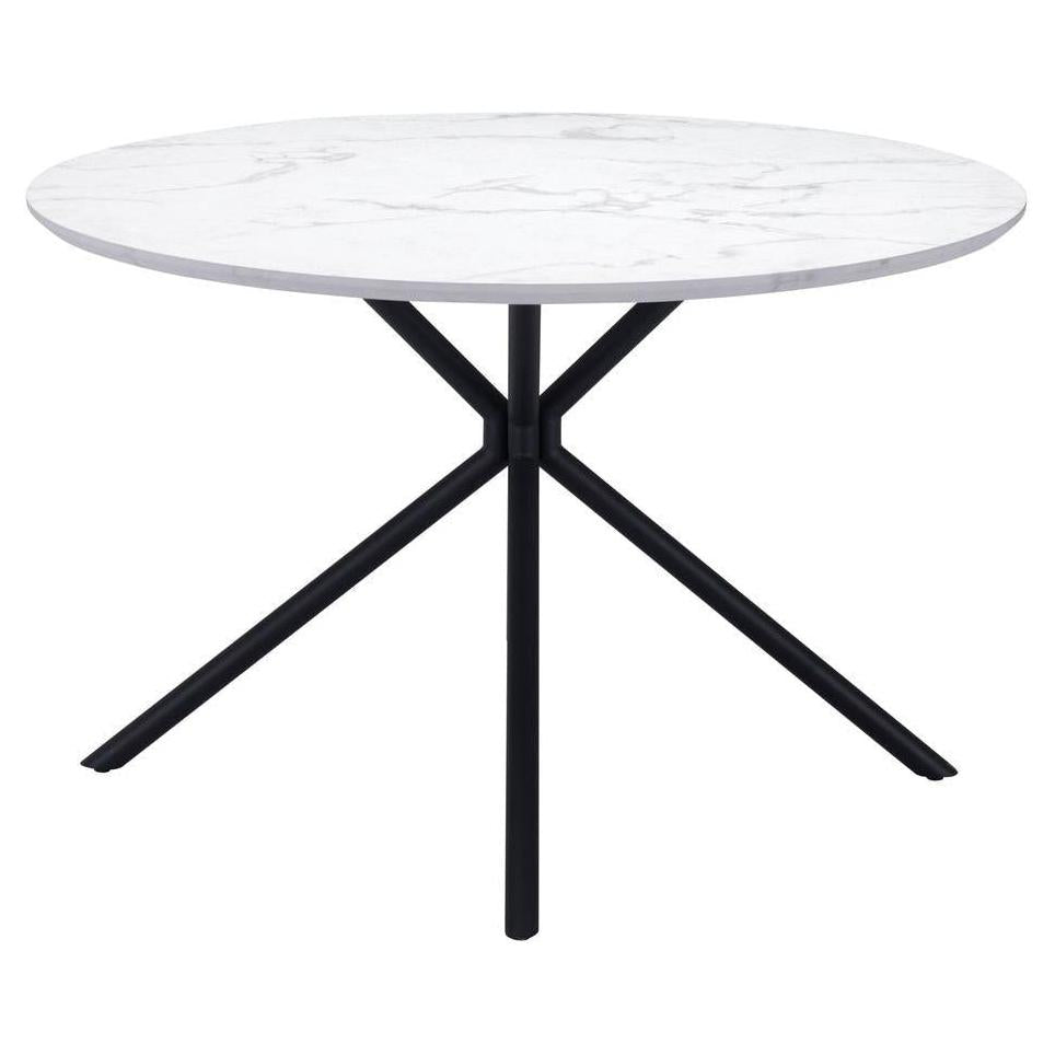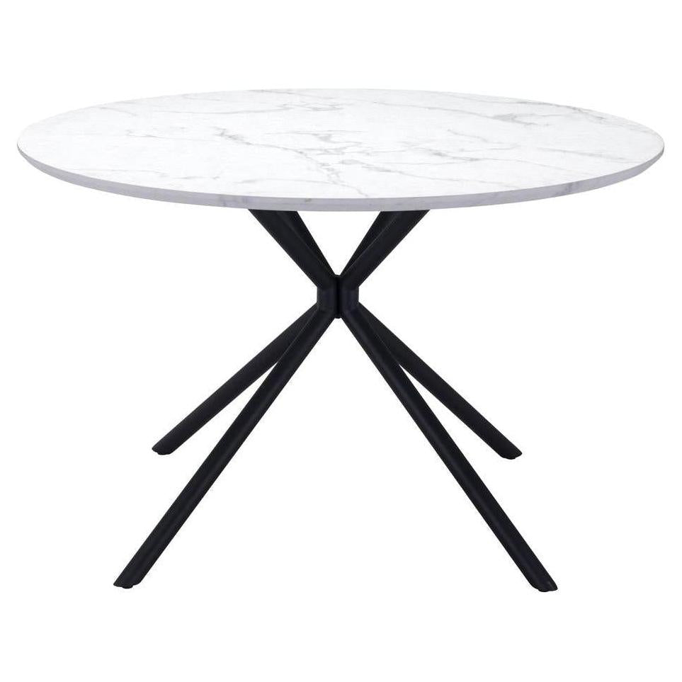 | A classic round table, the Amiens Table fits any mid century modern space, perfect for any space, dining, work, or open plan. The top is a durable MDF laminate top with a marble print and steel legs powder coated in black. | |
