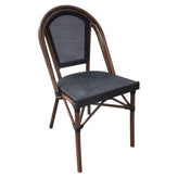 A sophisticated design featuring an all-aluminum frame with black textilene fabric for a comfortable seat and back.