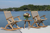 Antique Wash Eucalyptus & Wheat Rope Modern Rocking Chair is crafted from Eucalyptus Hardwood, Nautical-Grade Rope for a warm, natural look suited for commercial and residential outdoor settings.