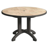 Proudly made in the USA, the Aquaba resin 48” outdoor tables feature a realistic metal design with a surface texture that resists scratches and most common food stains. Our stringent quality standards ensure that the Aquaba will last for years of tough use in busy cafes, restaurants and patio seating areas.