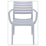 This Artemis Outdoor Dining Arm Chair is a commercial grade chair designed to last and look great in your cafe. This chair works great for traditional or modern designs. This chair is a stacking chair and is made of highest-quality commercial grade resin designed for the budget price point. This chair comes in white, black, brown, dark gray, teak brown, dove gray and silver color. This product is protected by our low price guarantee and our customer satisfaction return policy. Artemis resin outdoor dining armchair. Comfortable seat and back. Super sturdy commercial strength. Made from commercial grade resin with gas injection molded legs. 100% recyclable polypropylene construction. No metal parts. Stackable. UV resistant. Easy cleaning. Maintenance Free. |
