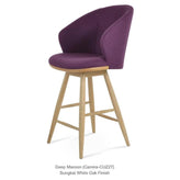 Athena Baba is a contemporary swivel stool with a comfortable upholstered seat and backrest on wood legs available in Sungkai Wood white oak finish as well as Teak Wenge finish. The seat has a steel structure with “S” shape springs for extra flexibility and strength. This steel frame molded by an injecting polyurethane foam. Athena Baba Stool may be upholstered with variety of other colors as a special order with a minimum of quantity required.